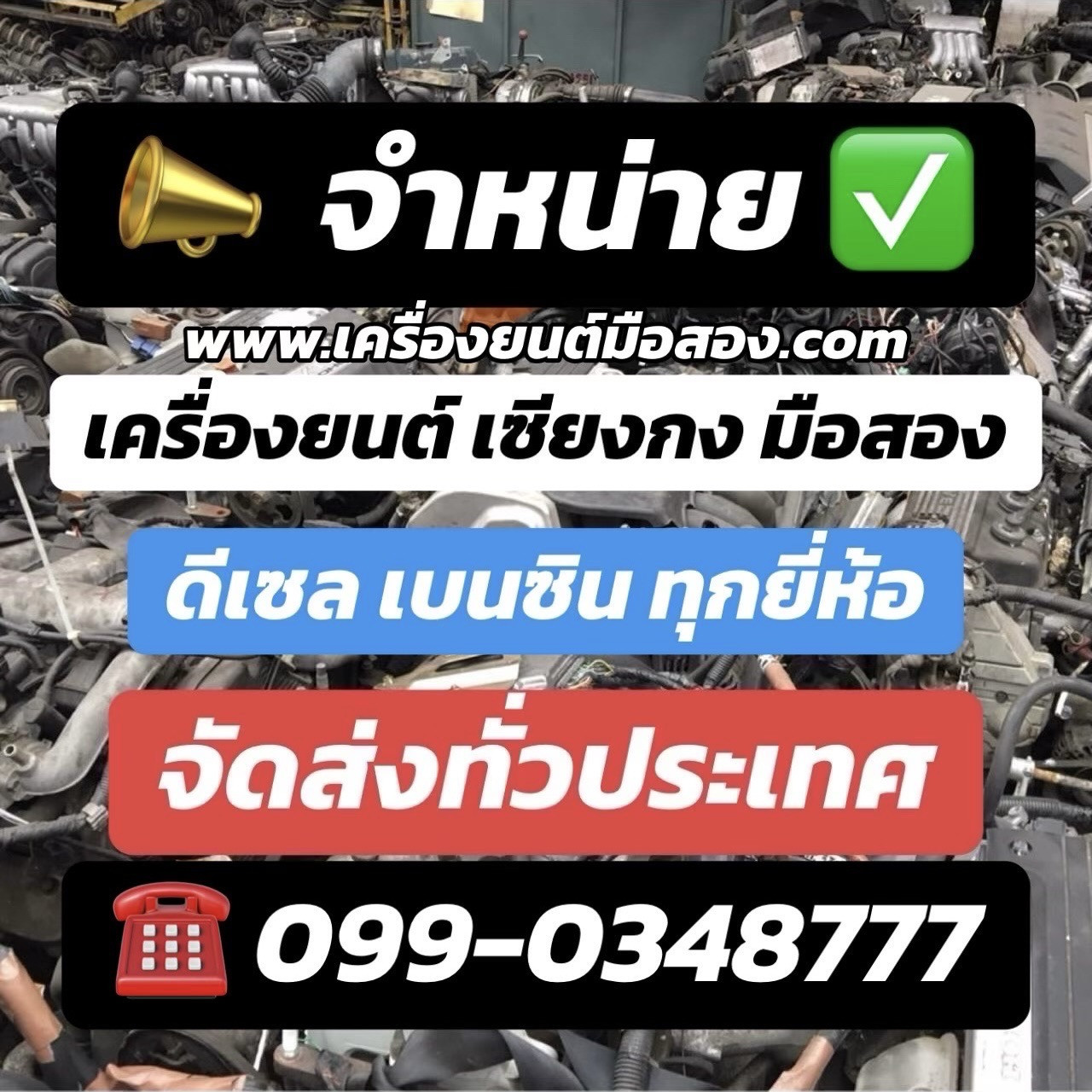 - เครื่องสภาพเดิมจากรถบ้าน รถบรรทุก หรือรถที่ยังใช้งานในประเทศ